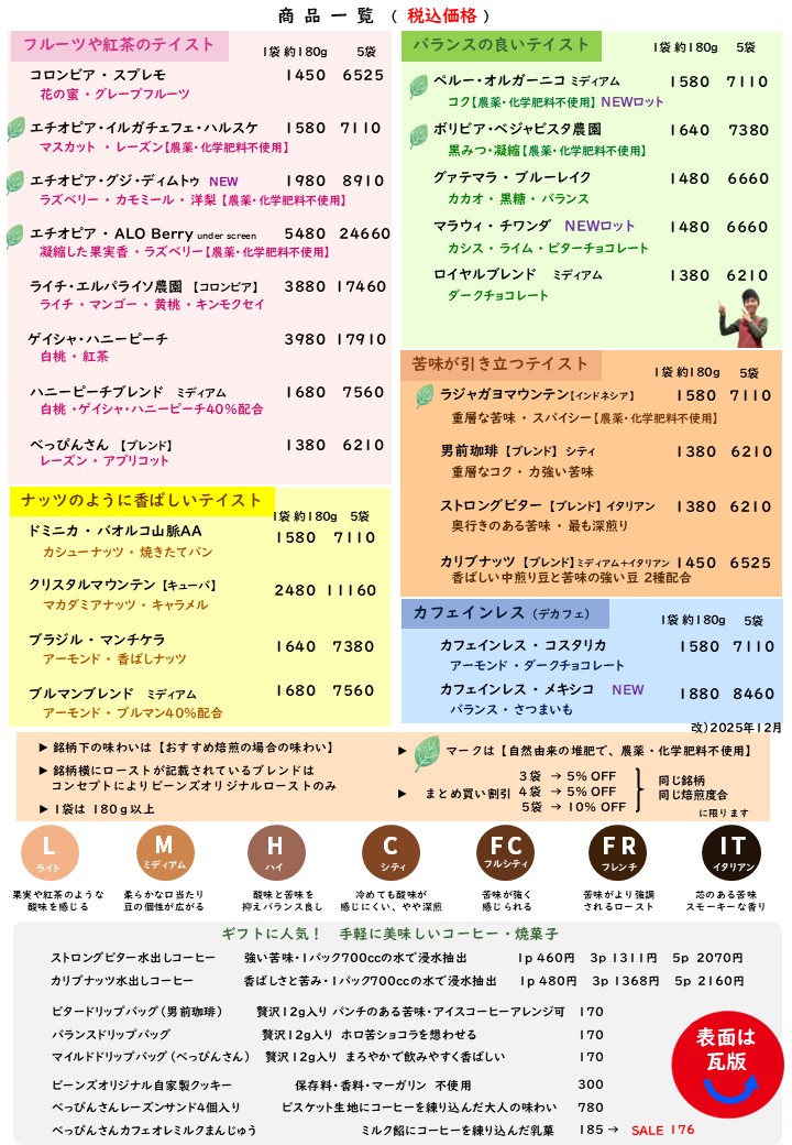 2025.11.28 ビーンズのきままなブログ, 瓦版 コメント: 0 【瓦版VOL.230】2025年お世話になりました!感謝の年末セールやります! 清水姉コーヒー豆屋が毎月つくる、ちょっと読みたくなる新聞—— その名も『ビーンズ瓦版』。2025年お世話になりました!感謝の年末セールやります! 清水妹2026年も幸多き年になりますように~☕️ Post Share Hatena Pocket RSS feedly Pin it 【瓦版VOL.229】37周年ブレンド今月まで!職人おすすめ豆を再特集! 【瓦版VOL.231】2026年よろしくお願いします!ビーンズの昔話など。 関連記事 【土曜日限定選べるアイスコーヒー】 【2020 ゴールデンウィーク休業のお知らせ】 アイスコーヒー焙煎、ドどどどどどーー・ピーク!! 【瓦版VOL.191 2022年9月】清水姉、発酵つながりでカカオ豆を考察。せたペイ始ま... 「七福豆」登場!縁起を担いで2017→2018年、一気に駆け抜けましょうぞ! 【瓦版VOL.222】春爛漫!宮下君、3年目の葉山移住生活を語る! コメント コメント ( 0 ) トラックバックは利用できません。 この記事へのコメントはありません。 返信をキャンセルする。 名前 ( 必須 ) E-MAIL ( 必須 ) ※ 公開されません URL Δ